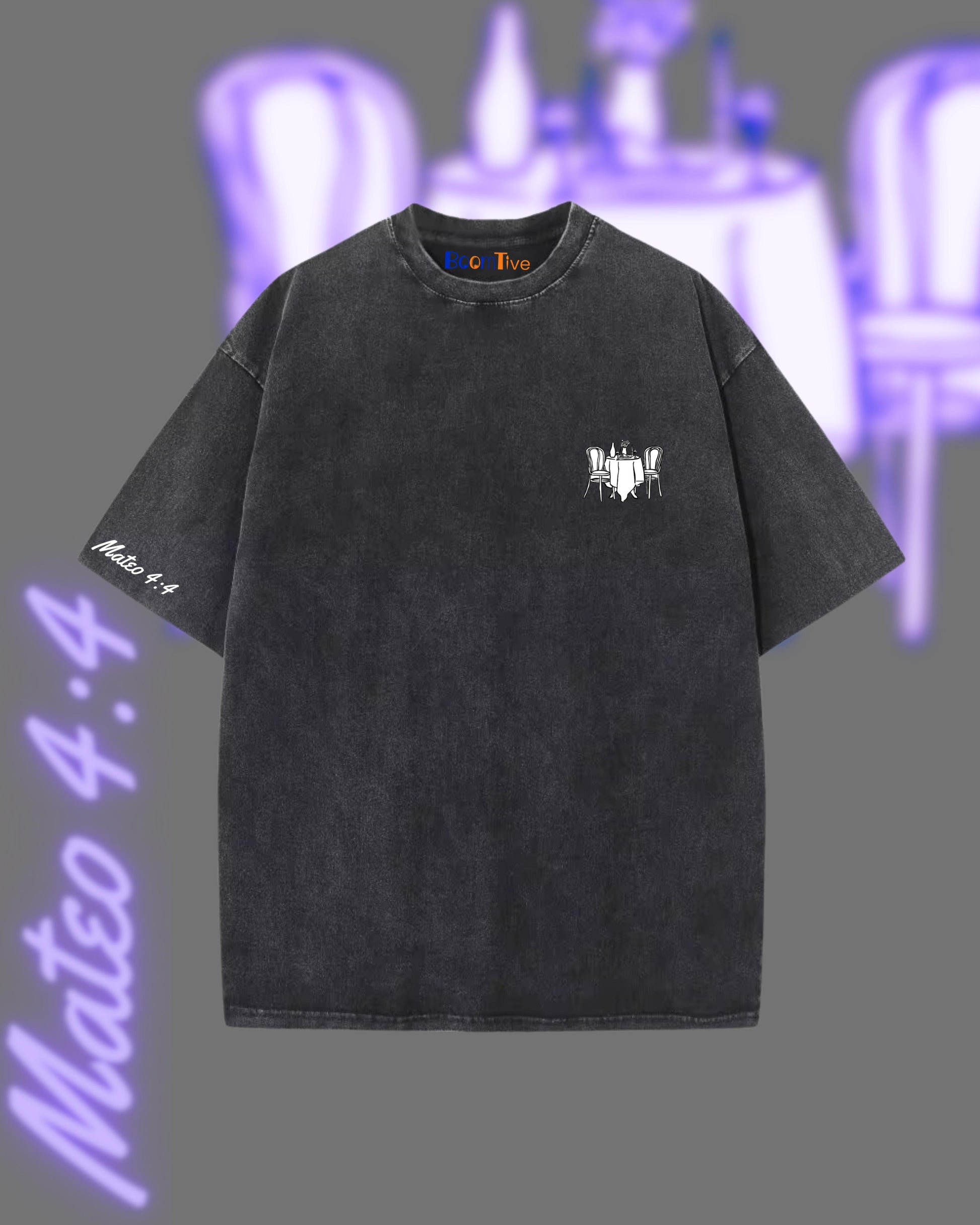 Viste un mensaje que desafía y edifica. Esta camiseta de alta calidad presenta el diseño de una mesa preparada para ti y para Jesús, con la frase: "NO CAMBIES EL BANQUETE DEL CIELO POR LAS MIGAJAS DEL MUNDO". Es una prenda cómoda que sirve como una declaración de prioridades.