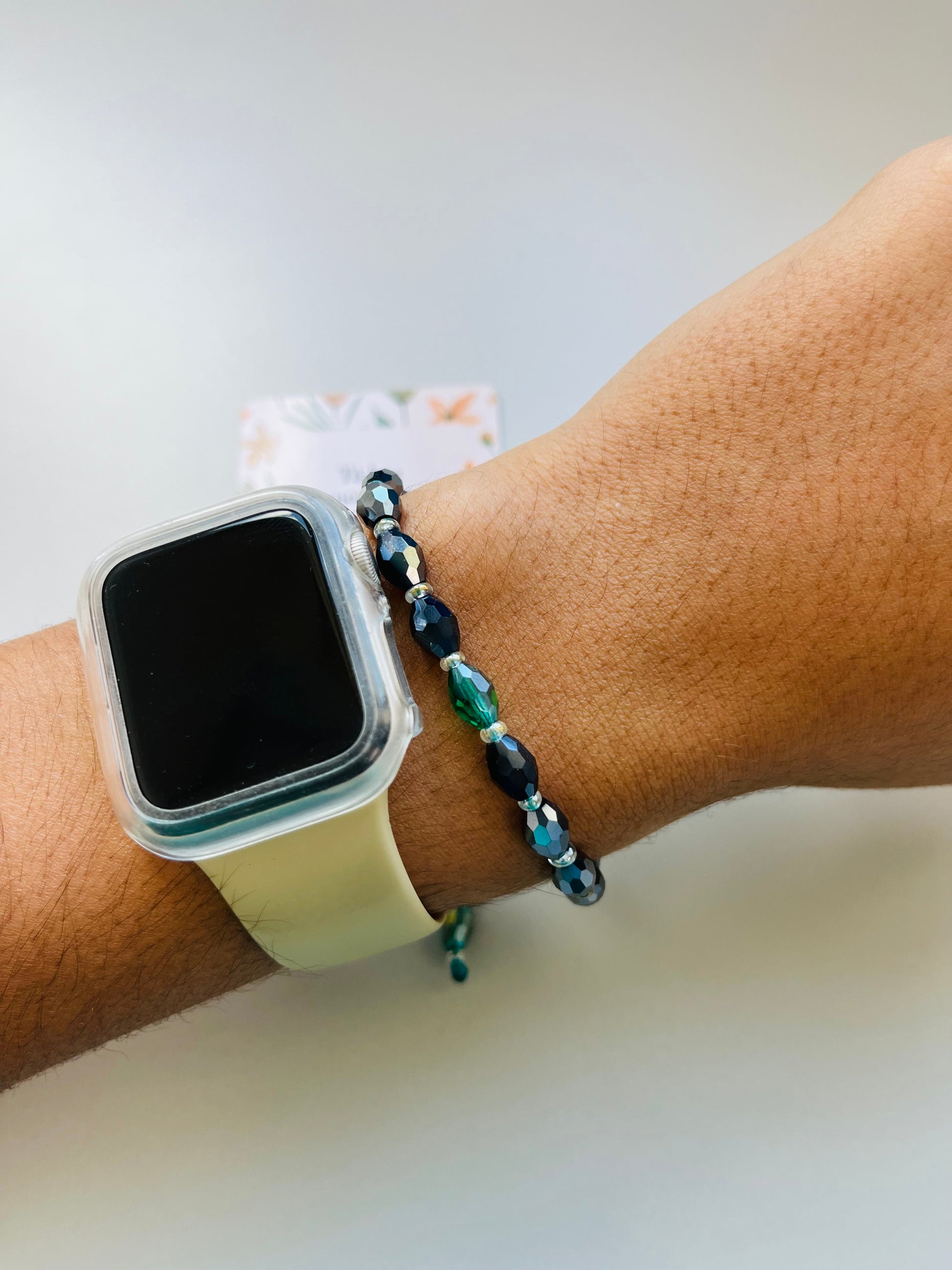 Pulsera en hilo adjustable hecha a mano con cristales.